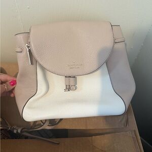 Kate Spade Taupe and White Leather Backpack