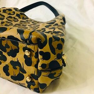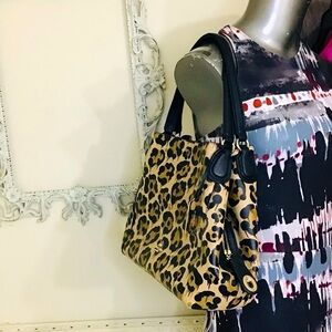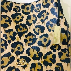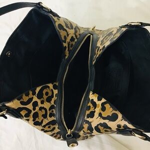 Coach Black/Brown Leopard Print Leather Edie Shoulder Bag
