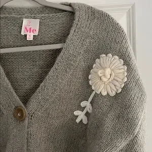 So Me Women's Cardigan in Gray with Cream Floral Details