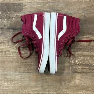 Vans Maroon High-Top Sneakers with White Stripe