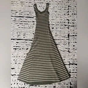 Chic olive green maxi dress with white stripes. Perfect for versatile styling. Great condition like new, only worn a handful of times.