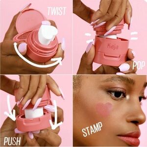 NIB Kaja Cheeky Stamp Blendable Blush in Feisty (Cool Raspberry). Korean makeup brand with a cute heart-shaped cushion stamp for a blendable, glowing look. Brand new in sealed box.
