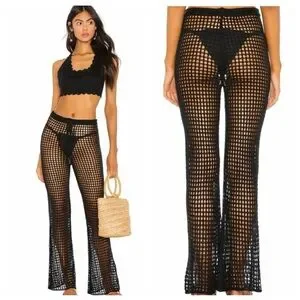 Shade & Shore Crochet Black Beach Pool Cruise Cover Up Pants - size XL -MSRP $28
