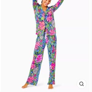Lilly Pulitzer PJ Knit Set Button-up Top Multi Festive Fantasy Size Med