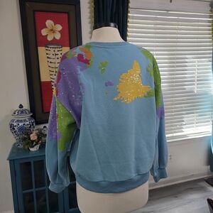 Vibrant sweatshirt featuring a sequin map design. Perfect for adding a pop of color to your wardrobe.