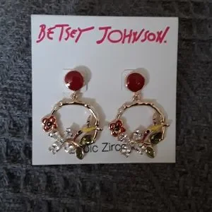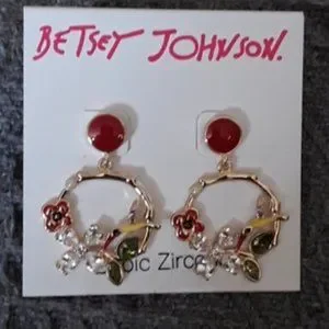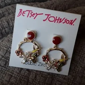 NWT Betsey Johnson CZ FLOWER HUMMINGBIRD EARRINGS