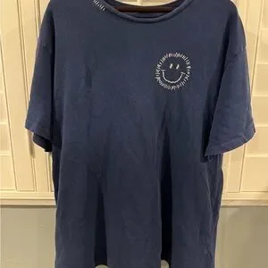 I stole my boyfriends shirt blue smiley face cotton t shirt medium