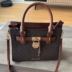 Chic and versatile satchel. Features signature MK pattern. Perfect for everyday use.
