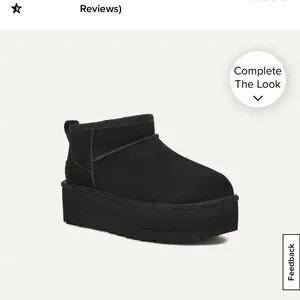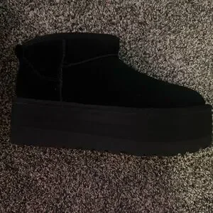 Only been worn once or twice. First two pictures are from UGG’S website. These are in really good shape. I am open to offers!!! Smoke free home. Only UGG approved products have been used on the boots. No smell on the inside. Step up your style with these sleek black platform ankle boots. Perfect for any occasion, these shoes offer both comfort and a bold look.
