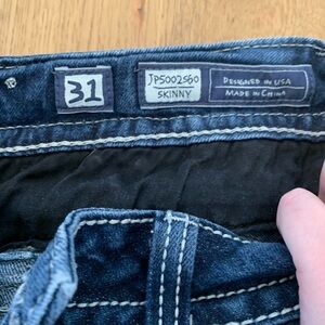 Miss Me Mid Rise Skinny Jeans Women’s 31 Flap Pocket Embellished Bling Metallic