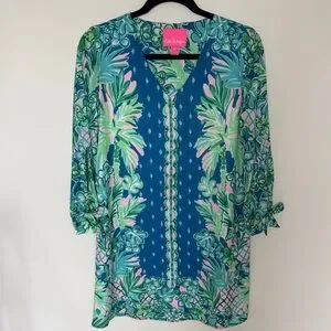 Lilly Pulitzer Blue and Green Tropical Dress, size XS