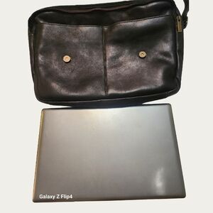 Beautiful sturdy leather bag, no signs of wear. Color varies by light but black leaning brown. EUC