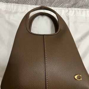 Polished pebble leather Magnetic snap closure leather and fabric lining Side open compartments Handles with 5 drop Detachable strap with 21 1/2 drop for shoulder or crossbody wear 8 3/4 (L) x 7 (H) x 5 1/2 (W) Style No. CM545