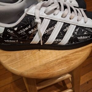 70's coated leather upper, zigzag edging on the 3 stripes, and the signature rubber shell toe. good condition
