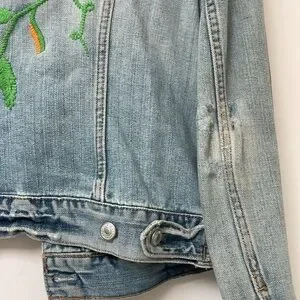 I hate that this is too small! It’s so cool! The distressed look is accented with beautiful colorful embroidered flowers! You will definitely get compliments in this one!