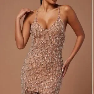 Dazzle in this stunning beaded mini dress. Perfect for a night out or bachelorette party!