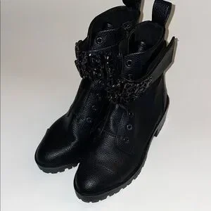 Karl Lagerfeld Black Embellished Combat Boots size 6, very good condition
