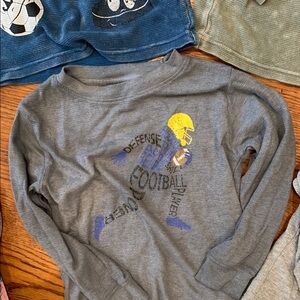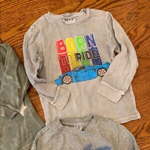 Three & Out Kids Long Sleeve Graphic Tees - Blue, Green, Gray 4t Denny’s Bundle