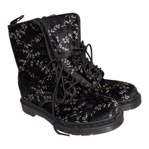 Dr. Martens Womens Size 7 Black Velvet Floral 8-Eye Boots Vintage Rare