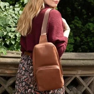 The minimalist silhouette makes the Rosa Sling a perfect on-the-go bag for whatever your day holds. Thoughtfully designed to accommodate any lifestyle, this leather crossbody sling bag is compact, yet roomy. Featuring extended pull loops, adjustable backpack straps with a slider and clip buckle for ultimate function and versatility. The front storage pocket includes an interior card slot for easy access, as well as an interior in the main compartment for additional organization.