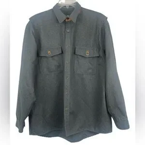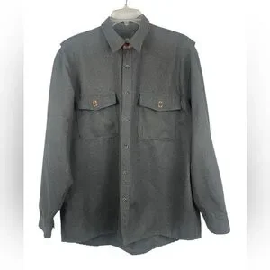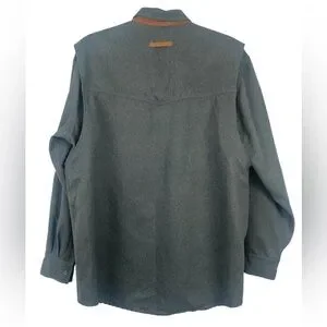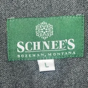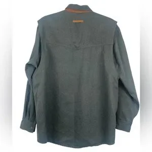 Schnees rifleman flannel shacket in grey w/leather trim collar. Size large GUC