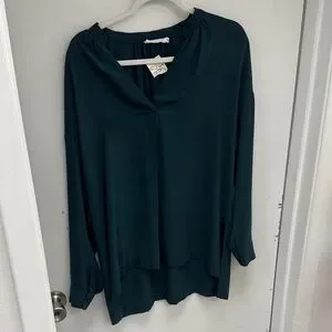 Lush Dark Green Long Sleeve Women's Blouse Size Large
