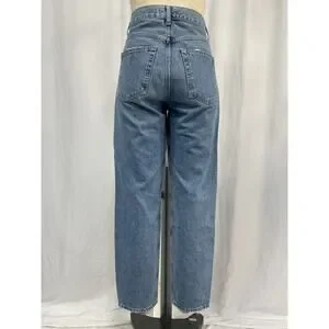 Agolde High Rise Blue Cotton Baggy Taper Denim Jean Size 26: heavyweight, non-stretch denim, full length, button fly, 5-pocket styling.