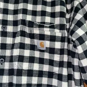 Carhartt Flannel Shirt Black White Mens Size Large Long Sleeve Rugged Flex