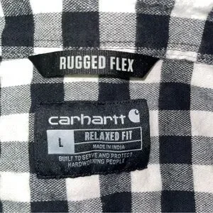 Carhartt Flannel Shirt Black White Mens Size Large Long Sleeve Rugged Flex Shirt