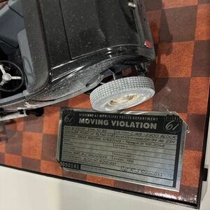 F. F. Ertl Ill Inc. is a must-have for any collector or enthusiast. The "dirtied" black exterior and gray interior details make this model a standout addition to any display case. The Highway 61/ DCP brand and Origins Of Speed series add to the value and authenticity of this model. It comes with a metal "Moving Violation" ticket and a case, making it a complete set.