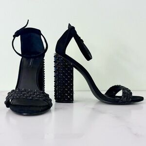 Chic black heels with studded design and block heel. Perfect for a building stylish looks.