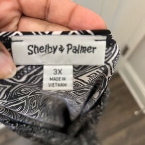 Elegant dress with intricate black and white patterns. Perfect for any occasion.