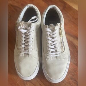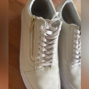 Stylish Vans sneakers in off-white. Features a unique side zipper. Ideal for casual wear.
