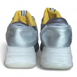 Bronx Baisley Low Top Sneakers White, Yellow , Silver Leather Women EU 40/ US 9