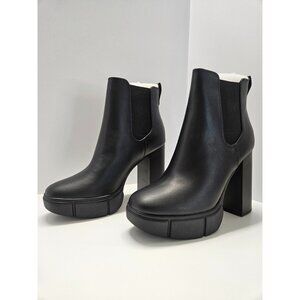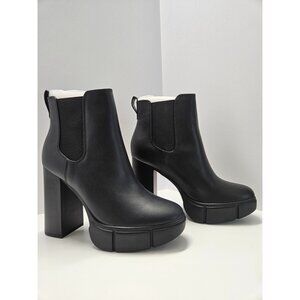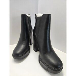 These boots had an accident while being transported, and you can see a minor scratch in the back of the heel, not very noticeable while you wear them, and that's why they're being presented with a significant discount compared to the ones that are in perfect shape. The Marco Republic Women's Black Fargo Chunky Heel Boots in size 8 are a stylish and versatile option for any woman. With a round toe shape, ultra-high block heel of 4.5 in, and ankle shaft style, these boots are perfect for various occasions such as travel, parties, or casual outings. The black faux leather upper and cushioned insole provide comfort and durability, while the vegan lining adds a touch of eco-friendly chic. Whether you're going for a gothic look or a trendy outfit, these boots are sure to make a statement with their solid black color and unique design.