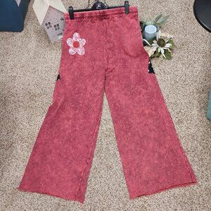 3538 Size 1X Zenana Mineral Washed Upcycled Pull On Pants with Raw Hem. Waist 18" inseam 32" rise 15".