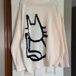 NWOT ** Cozy cream sweater featuring a bold cat design in black. Design on front and back