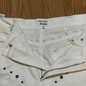 Reformation Jeans Cowboy Studded High Rise Straight Vintage White Size 29