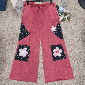 3539 Size 2X Zenana Mineral Washed Upcycled Pull On Pants with Raw Hem,NWT. Waist 19" inseam 32" rise 15".