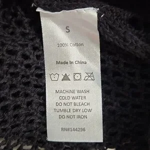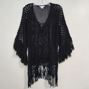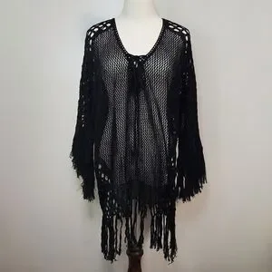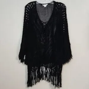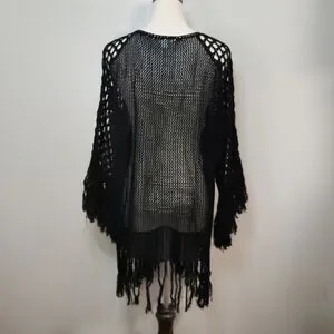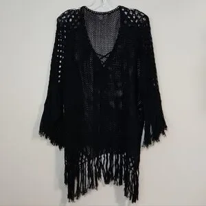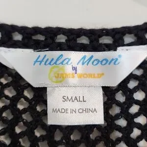 Hula Moon 💯% Cotton Black Oversized Crochet Swim Cover-Up, Size S~NWOT