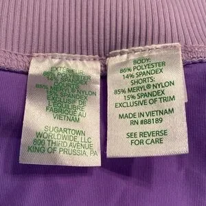Luxletic skort in Purple Iris On the Chase print. UPF 50+ fabric for enhanced sun protection. Waist measures 19“ laying flat, length is 16 1/2“ from waist to hem. Built in shorts have a 4” inseam. Excellent condition with no stains or flaws.