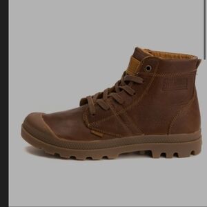 Rugged brown leather boots. Comfortable and versatile. Ideal for everyday wear.