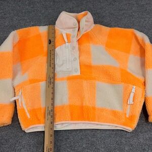 Free People FP Movement Jacket Women XS Electric Orange Hot Gingham Check Sherpa