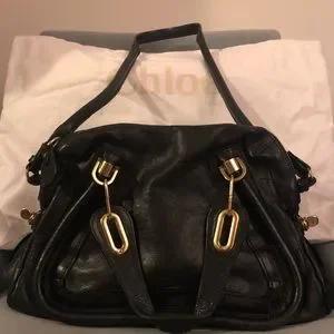 Chloe Black Shoulder Bag with Gold Accents