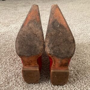 Size 7.5, EE width, 14” high & almost 13” from sturdy short heel to eye-catching pointy toe! Worn only 2-3 times! See photos to note how little wear these boots got: the Los Altos heel logos are barely even scuffed! New online these average from $200–450+. Quality construction will give you years of wear!