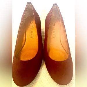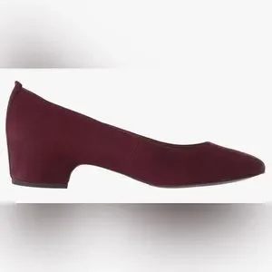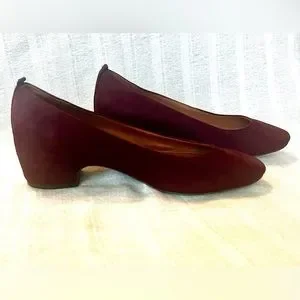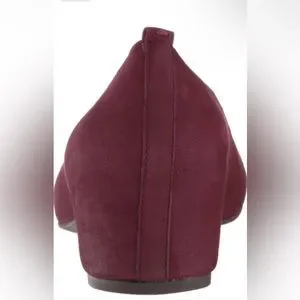Chic deep red flats. Soft suede finish. Comfortable design.