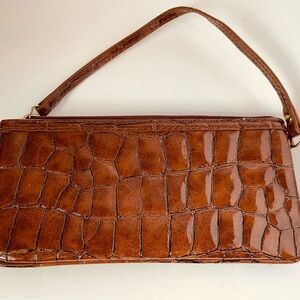Liz Claiborne Brown Crocodile Embossed Leather Clutch