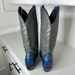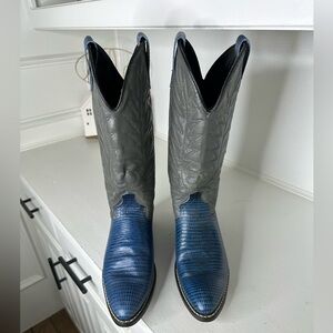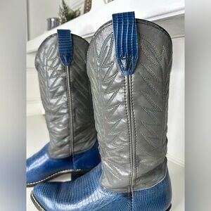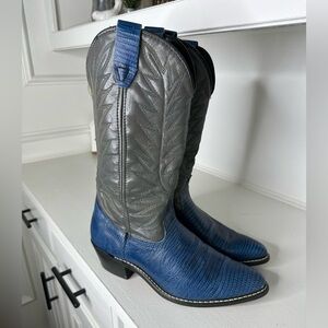 Vintage Acme Western Cowboy Boots – Blue Lizard Print Vamp & Gray Shaft Size 10