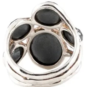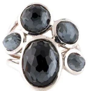 Chic Ippolita ring with faceted black gemstones. Set in a polished silver band. Ideal for stylish elegance. NEVER WORN!!!