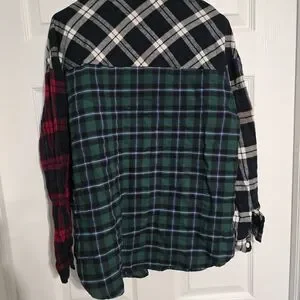 Stylish multicolor plaid button down shirt for women. Features a mix of blue, green, yellow, and red patterns. Perfect for casual outings.